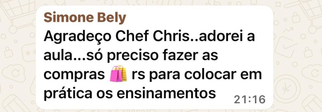 Sim. Os alunos têm acesso a um grupo de mentoria no WhatsApp, onde poderão tirar dúvidas diretamente com a Chef, compartilhar resultados e receber orientações durante o processo de aprendizado.
